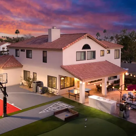 Die 3-Zimmer- Epic Family Home Pool Slide Putt Putt Theatre Room Phoenix bietet die Nähe zu nahe gelegenen Sehenswürdigkeiten wie der Esplanade (liegt rund 3 Kilometer von der Unterkunft entfernt). Die Gäste von dieser Villa im Bezirk Paradise Valley können Radfahren in der Umgebung genießen.